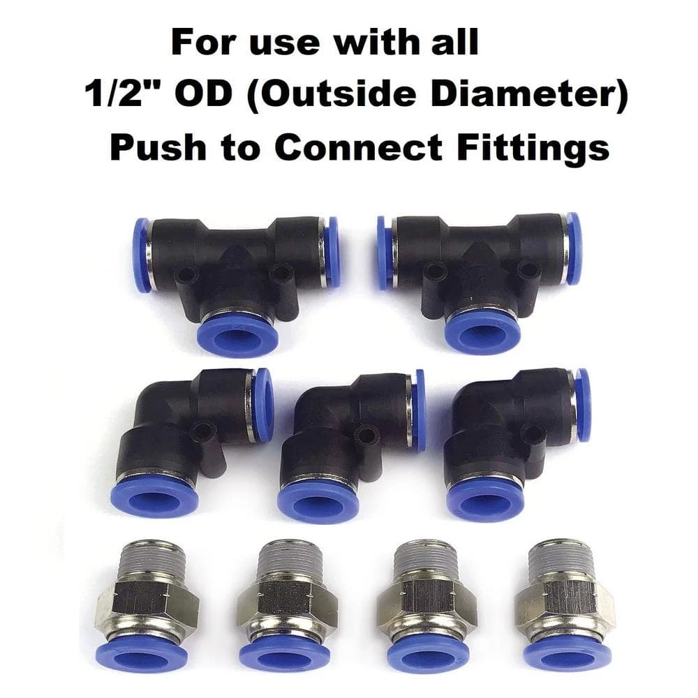 - Fittings connect to 1/2 in. (OD) outside diameter 3/8 in. (ID) inside diameter air tubing