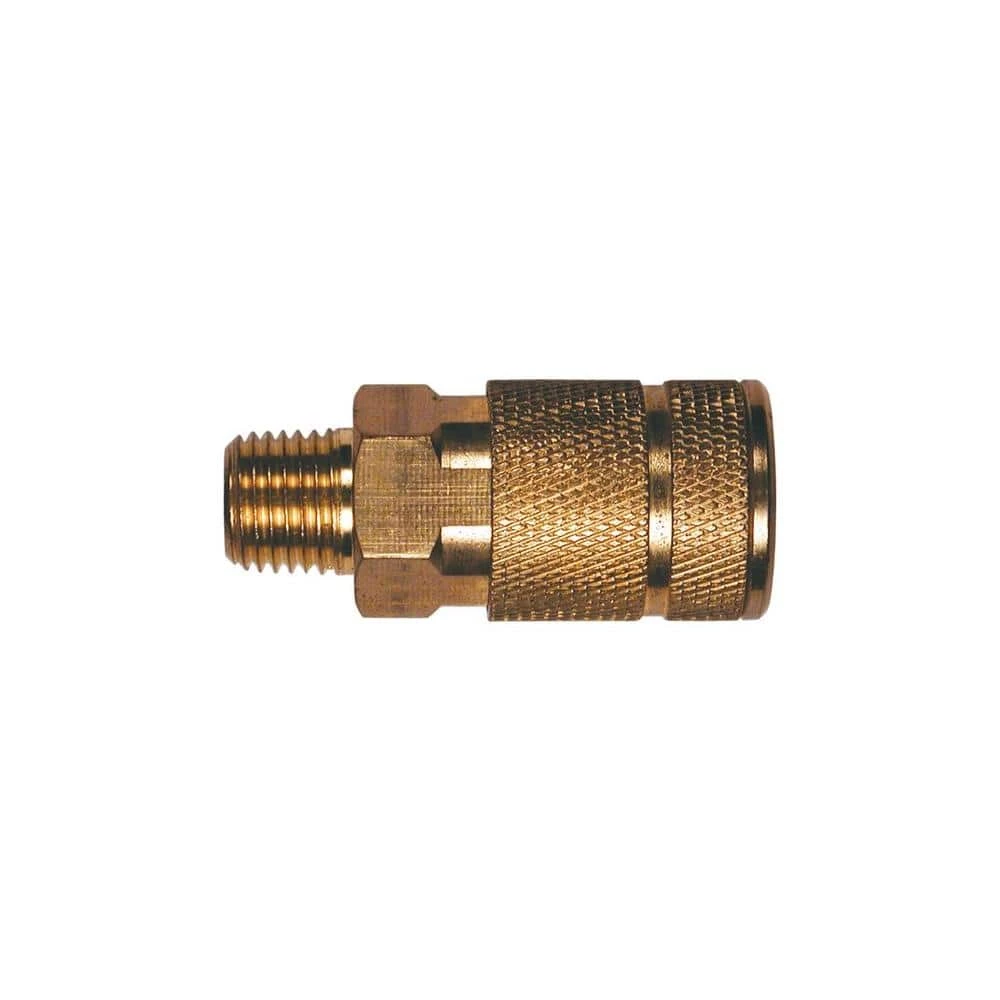 The Automotive 6-Ball Brass Coupler is a quick connector with a body measuring 1/4 in. with 1/4 in. male NPT threads. Automotive interchange is compatible with automotive, Truflate, “T” and Amflo “C” style plugs and couplers. This 6-ball bearing coupler features a brass construction, which means high corrosion resistance, longer life and smoother operation.
