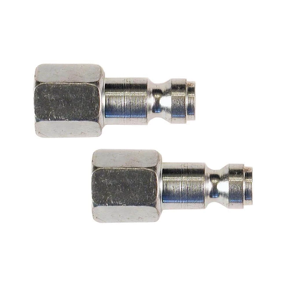 The Automotive Steel Plug Set is an air plug and nipple kit that contains (2) automotive style quick connect plugs with 1/4 in. female NPT threads. This set is ideal for use with spray guns and other accessories that have 1/4 in. male connections or ports. Automotive interchange is compatible with automotive, Truflate, “T” and Amflo “C” style plugs and couplers.