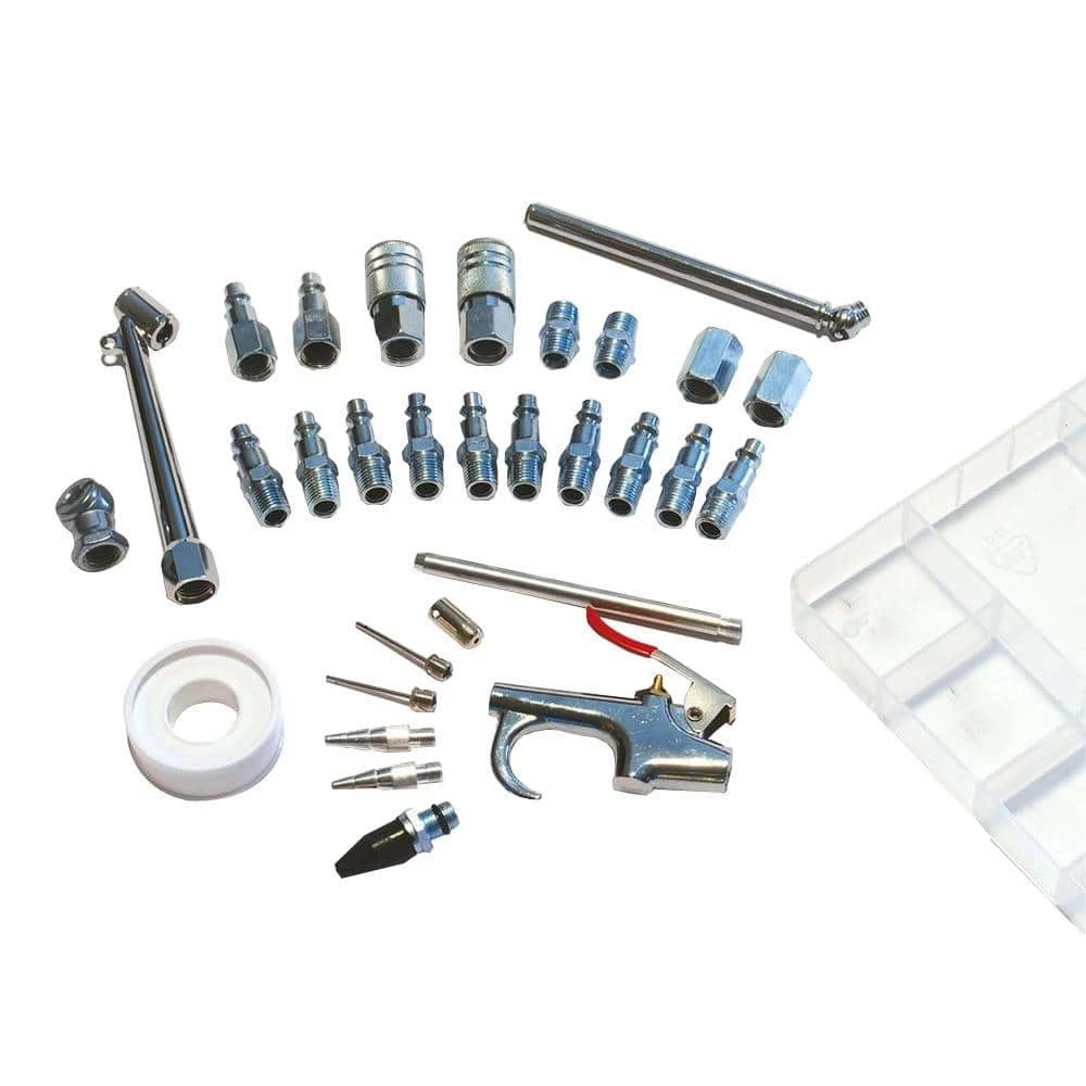 The Primefit Air Compressor Accessory Kit with Storage Case has all the most commonly used air compressor accessory items packed into a durable clear storage case for easy access and organization. This kit features durable steel construction with zinc plating for corrosion resistance. Included in the kit are essential items, such as a blow gun with (5) different nozzle attachments, (2) quick connect couplers and (11) quick connect plugs for a variety of tools. The Primefit Air Compressor Accessory Kit with Storage Case comes with a 1-year limited warranty. From do-it-yourself, to professional, to industrial applications, Primefit delivers. Primefit has been manufacturing Pneumatic Accessories, Air Tools and Compressors for over 30 years.