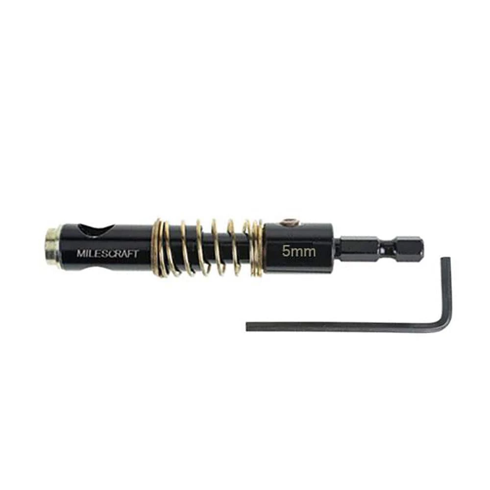 5 mm Shelfpin Bit. Self-centering custom spring loaded brad point drill bit. 3/8 in. guide bushing for precise and repeatable hole locations. Spring-loaded HSS brad point drill bit.