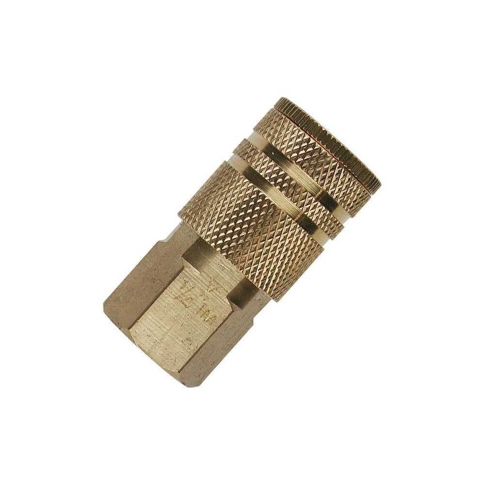 IC1438FB6-B10-P 6-Ball Industrial/M-Style Brass Coupler (1/4 in. x 3/8 in. Female NPT) (10-PACK). Industrial/M-Style Interchange, with 6 locking steel balls for increased life and holding power. Nitrile seals for performance in extreme temperatures and solid brass construction for high corrosion resistance and longer life.