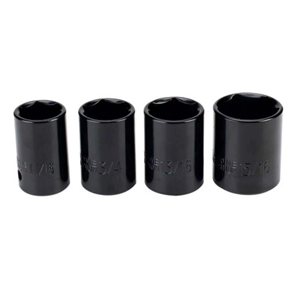 - Includes 4 sockets: 11/16 in., 3/4 in., 13/16 in., 7/8 in., plus heavy-duty storage case