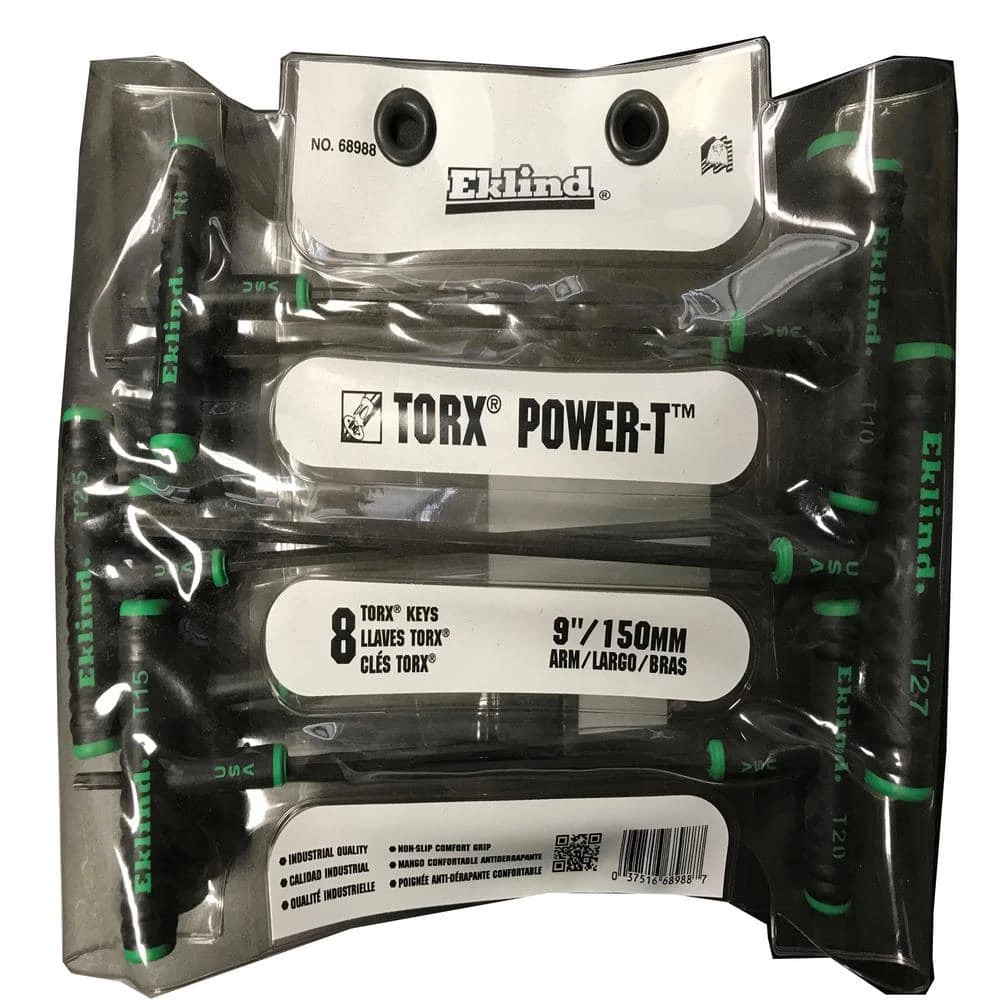 8-Pieces Torx with Pouch 9 in. Arm. Contains Torx sizes: T8, T10, T15, T20, T25, T27, T30 and T40. High quality, industrial grade professional tools. these Eklind tools are made with Eklind alloy steel that is heat treated, quenched and tempered for optimum strength, torque and ductility for safety and coated with a rust resistant finish.