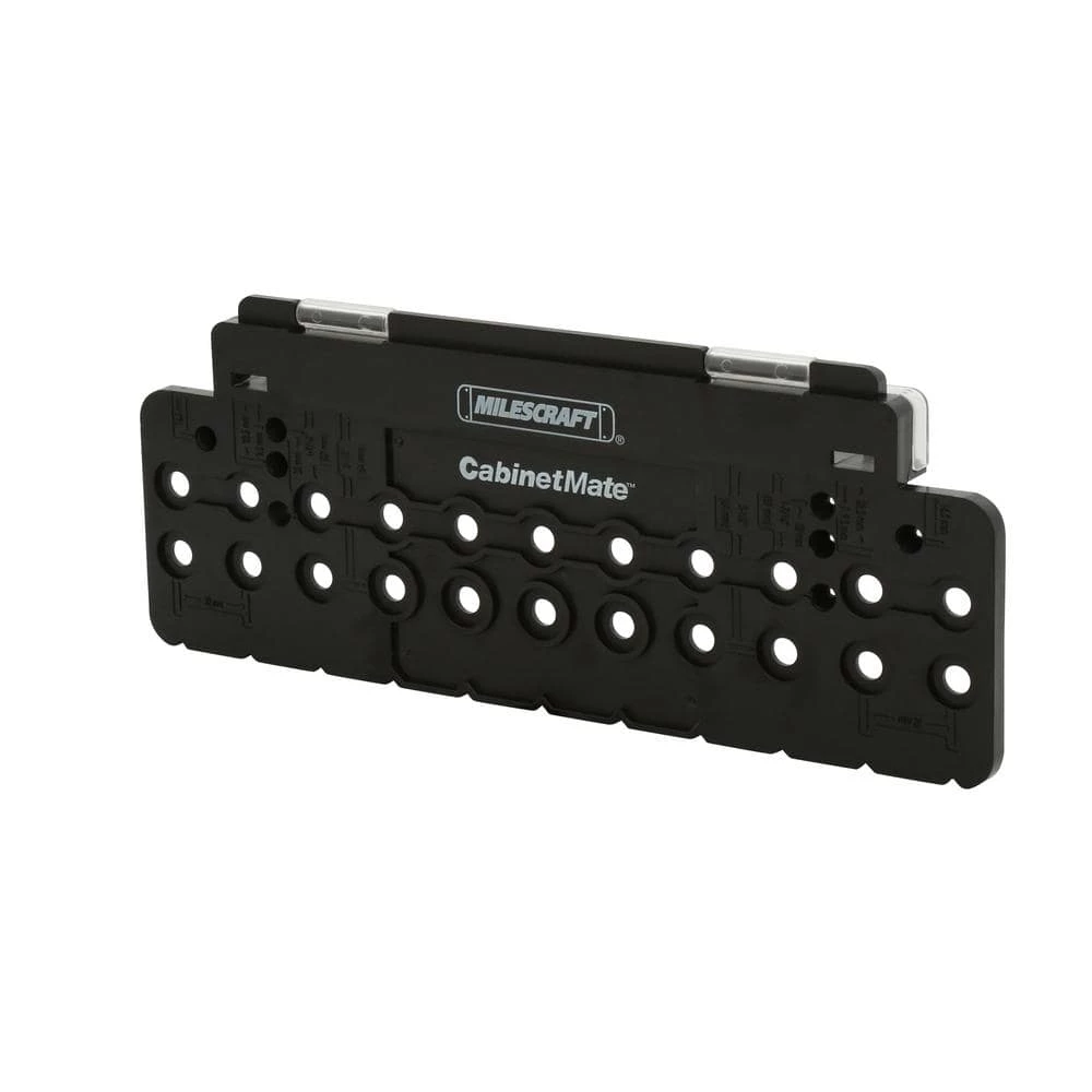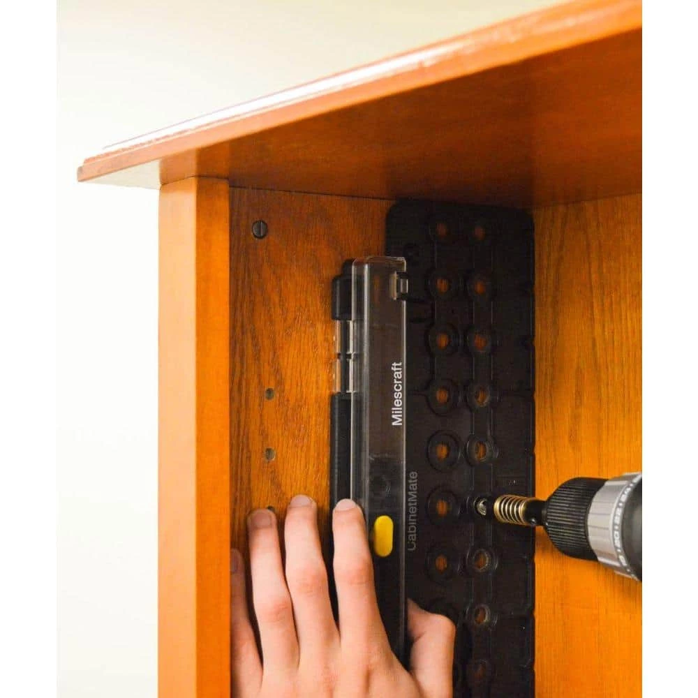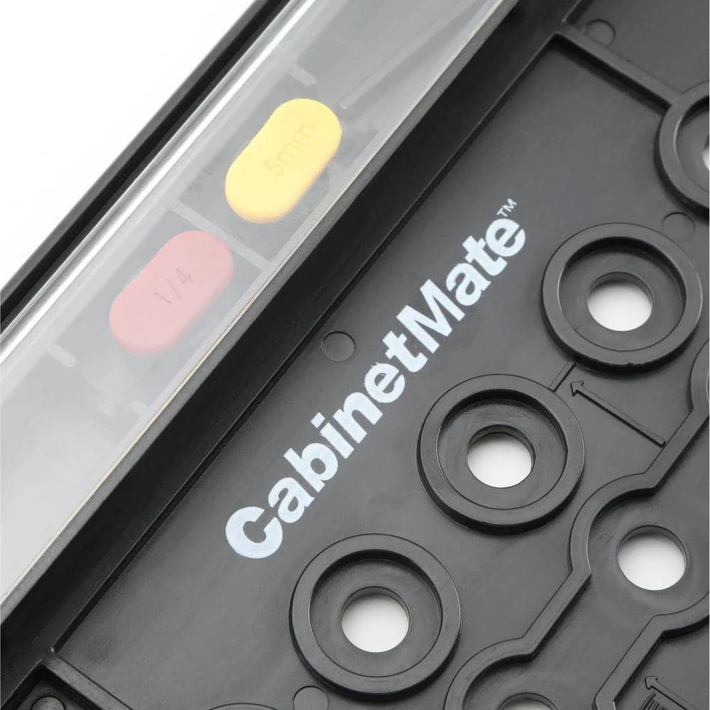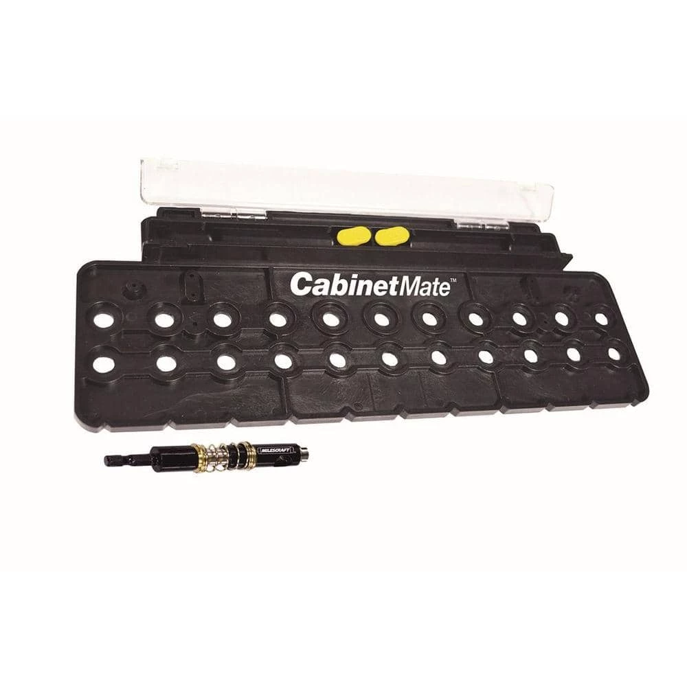 Position and drill perfect shelf pin holes every time. This easy to use lightweight and durable jig is a great alternative to shop made jigs, which typically wear out after just a few uses. The CabinetMate has a rigid main body, indexing pins and a self-centering, spring loaded drill bit. The custom spring loaded brad point drill bit allows the holes you drill to self-center with the holes on the main body. This bit is pre-set to bore a crisp hole with consistent depth for a perfect fitting shelf pin every time.