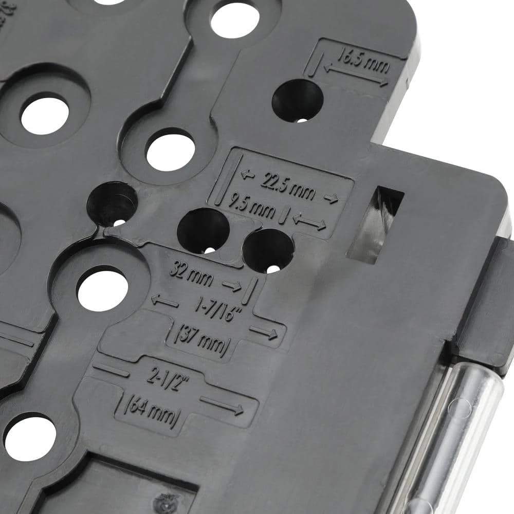 - Additional hole locations for concealed hinges (euro-style cabinetry)