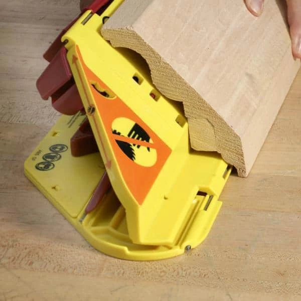This all in 1 kit is perfect for finishing off room renovations and updates. Use the Angle Finder to measure, lock in, and transfer crown molding and baseboard angles to your miter saw and make perfect cuts. The Crown45 supports crown molding with spring angles of 38°, 45°, and 52° ensuring stock is cut correctly the first time, saving time and money. The innovative design also allows you to cut the crown molding right side up- the way you will see it and install it- reducing error. After cutting, Use the included Crown Hangers for easy, 1 – man installation of your crown molding. For door trim and window casing, finish off your room by installing perfectly square window and door trim using the Trim45. Just measure, mark , cut, and install.