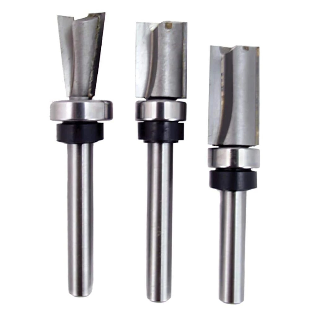 - Each router bit is equipped with a guide bearing, eliminating the need for an auxiliary bushing on the router