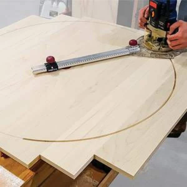 - Large router circle jig has built-in imperial and metric scales, with an easy readout window for setting the diameter of both your inside and outside cuts