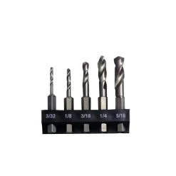 - 5-piece stubby bit set includes 3/32 in., 1/8 in., 3/16 in., 1/4 in., and 5/16 in. bits