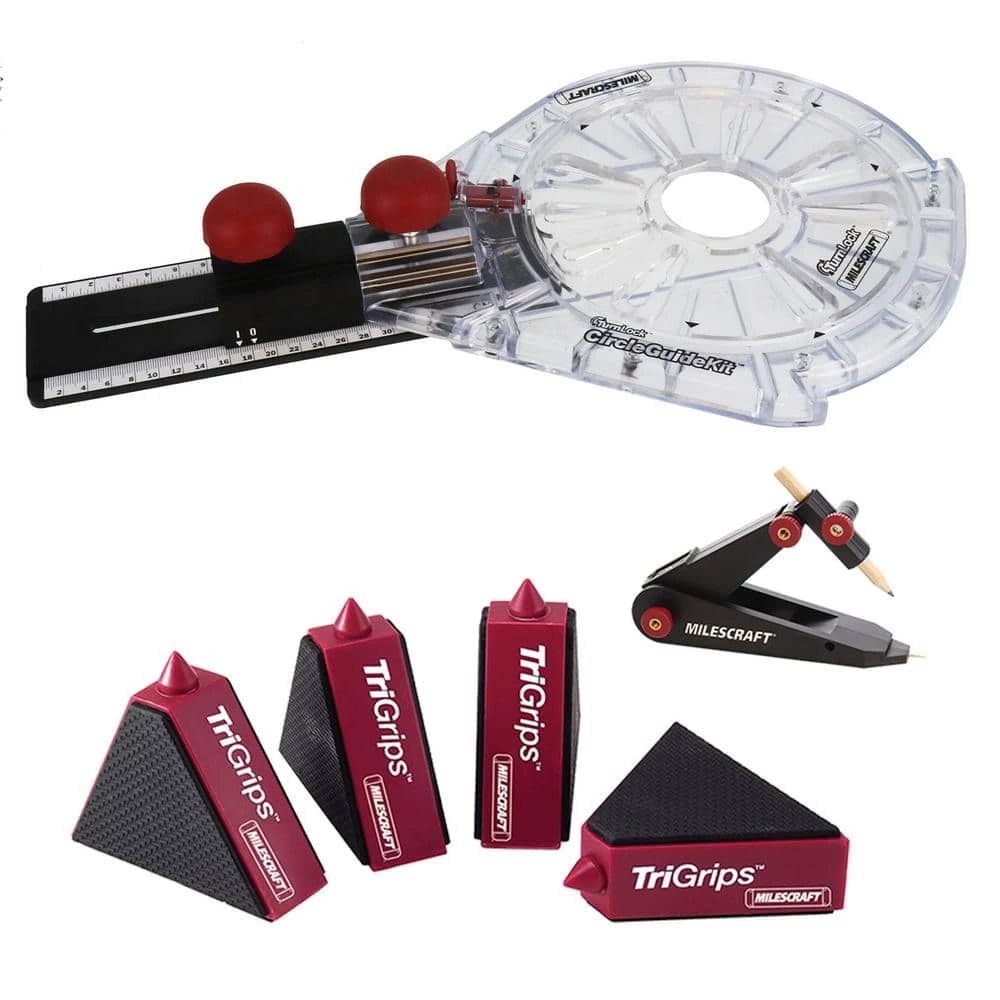 With the Small Circle Compass, you can expand the capabilities of your circle cutting. The jig allows you to cut circles from 1.5 in. Dia to 12 in. in Dia. With the included TurnLock base plate, this product is compatible with most routers. For precise accurate scribing, the handheld ScribeTec is perfect for a multitude of applications including architectural moldings, cabinet trim, countertops, and a variety of other projects. TriGrips are non-slip work supports hold projects securely for routing, sanding, painting, drilling, carving, and more.