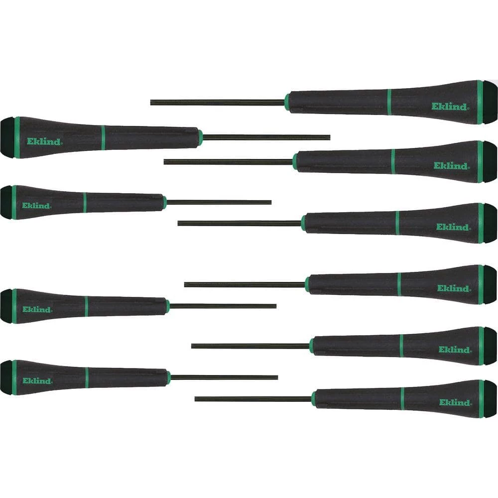 Eklind 10-piece Torx Series PSD Precision Screwdriver Set with Pouch. Includes Torx Sizes: T3, T4, T5, T6, T7, T8, T9, T10, T15, and T20. Eklind PSD Precision Screwdrivers have larger handles and a soft over mold for greater comfort and ergonomics.